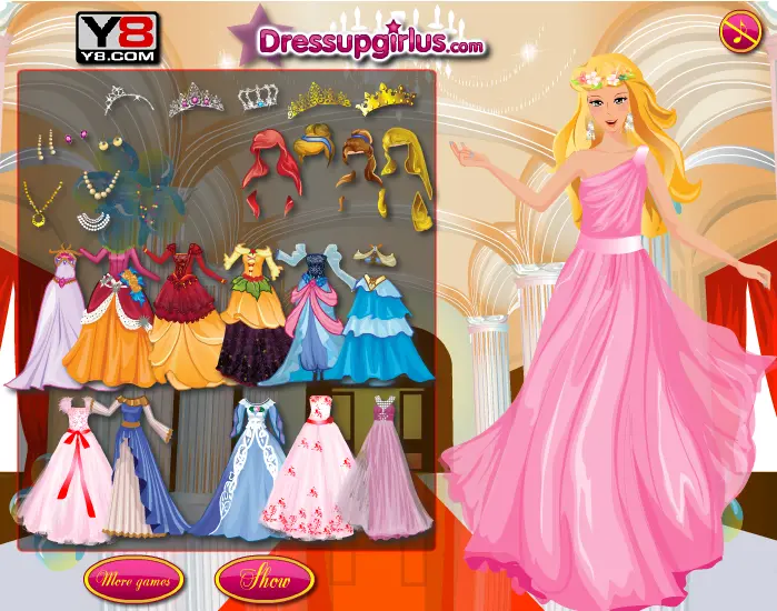 Girls, our charming princess is going to participate at a royal party. She needs to look perfect. Help her dress up and enjoy yourself with this princess game.