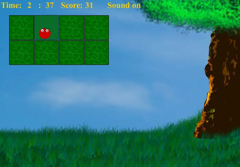 Mouse only. Find the matching pairs for each apple, and try to catch the falling apples to get more score and time.