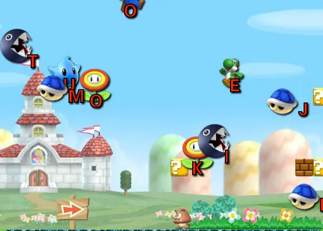 Test your ability to write on this Mario Typing Game. Type the correct letter and go to the next level. Watch out the letters will fall faster.