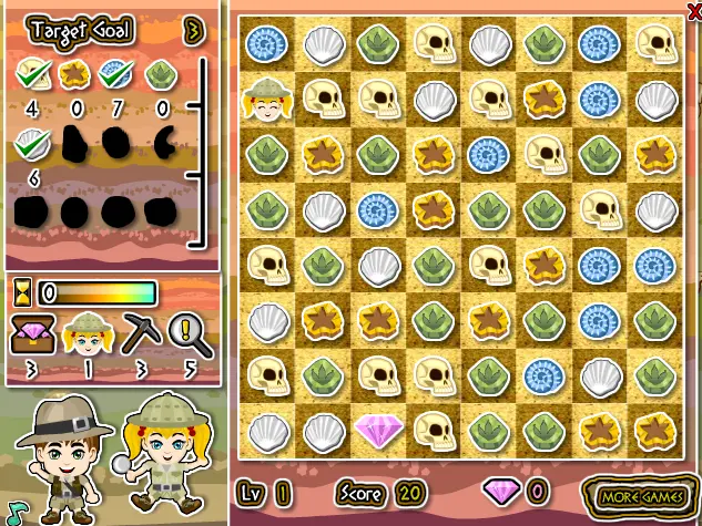 A bunch of new fossil have been found discovered. Help the Archaeologist match similar fossil together to dig them out.Use available tools to solve the puzzle more quickly and go to next level.