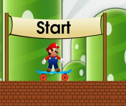 Help Mario skateboard this highly obstacle course along the way. Win all 8 levels to win the game, good luck and have fun.
