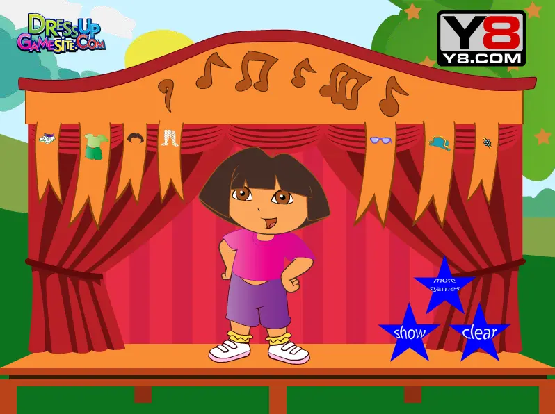 Dora is on stage and She is going to perform a nice show. Please help Dora for dressing up for her show.
