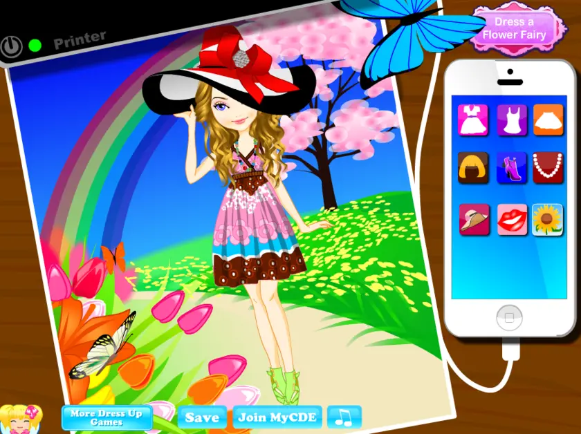 | Controls: | Use your mouse to click the home button on the iPhone to print out the image. Then click the apps to dress up the girl! |