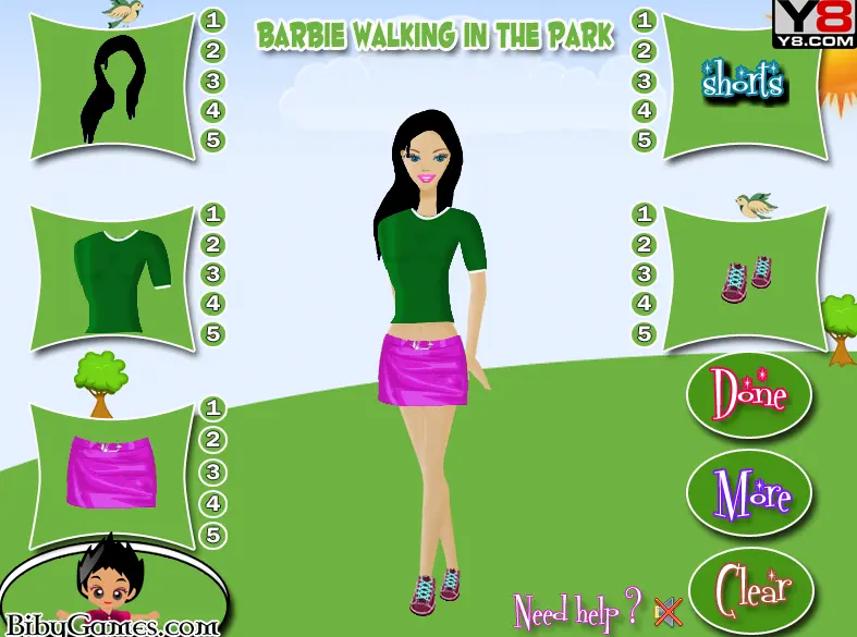 In game Barbie walking through the park you must help Barbie to dress in the most beautiful clothes. Have fun !