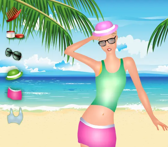 Young beautiful lady went to the resort for some rest. She loves sea and beach. It is her lovely place, and will stay here for a long time. So, help her to look like stylish and fashion young lady.