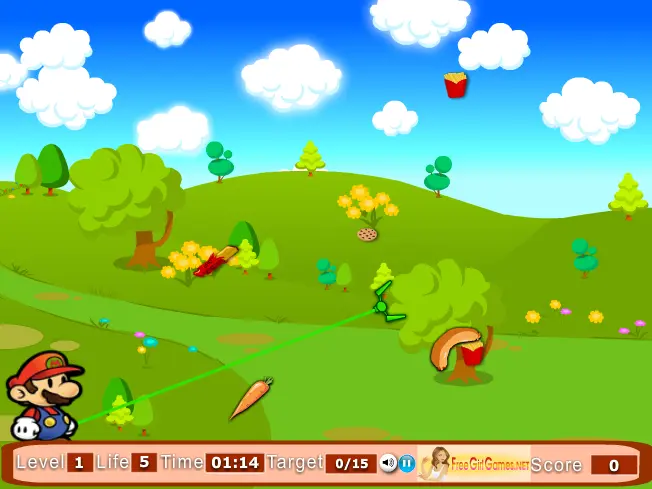 Mario is hungry and he is try to catch his lunch but he does not like peanuts.