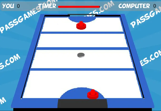 Use your holder to hit the puck and try to score as many goal as you can before time runs out. Score more than the computer to advance to the next opponent.