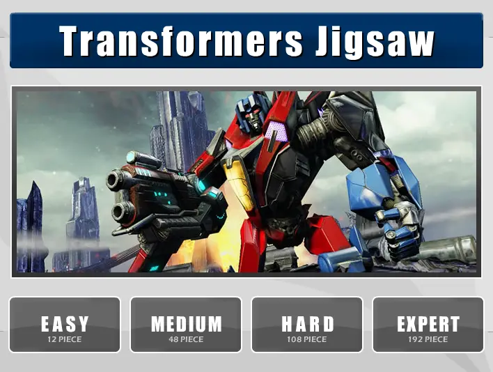 | Description: | Play free online Transformers Jigsaw game at Cartoon Games. Drag the pieces into right position using mouse. Multiple pieces can be selected using Ctrl + Left Click. You can choose one of four modes: easy, medium, hard and expert. But watch out on time, i |