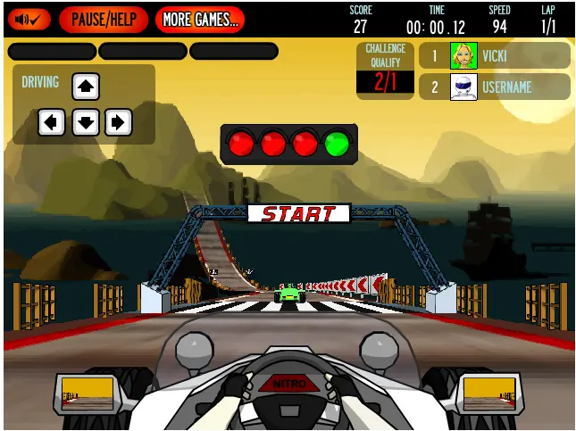 Arrow Keys - Drive. Z - Freestyle. X - Nitro.