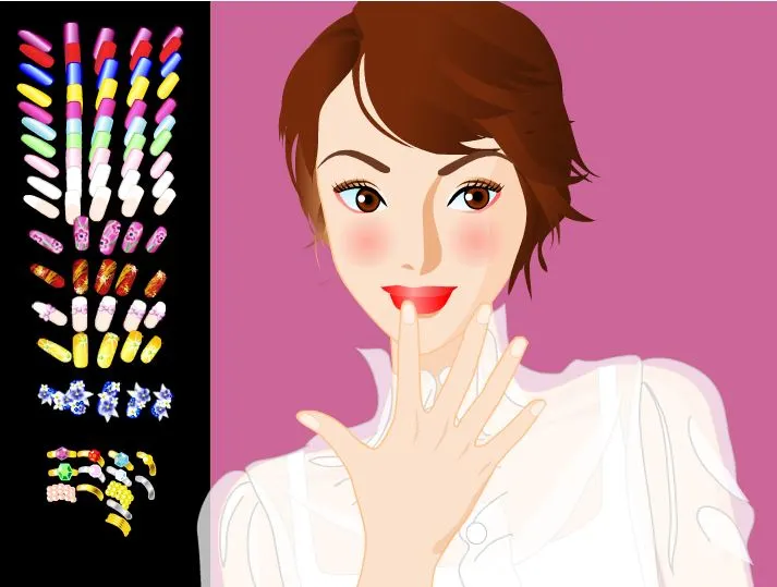 Get a nail makeover and apply the artificial nails to the girl's hands.