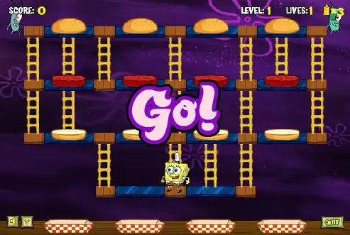 Run over the food pieces so they drop and make hamburgers. Watch out for baddies.