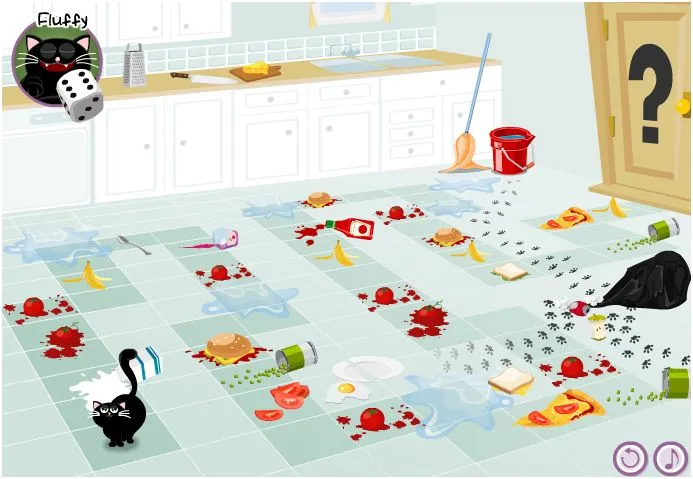 | Description: | Curiosity may not kill the cat, but it will set Fluffy on a fun adventure! Get Fluffy to the door at the other side of the kitchen to win: click the die to move, and complete mini-games along the way! Tip: If you get stuck on a mini-game, you can close it |