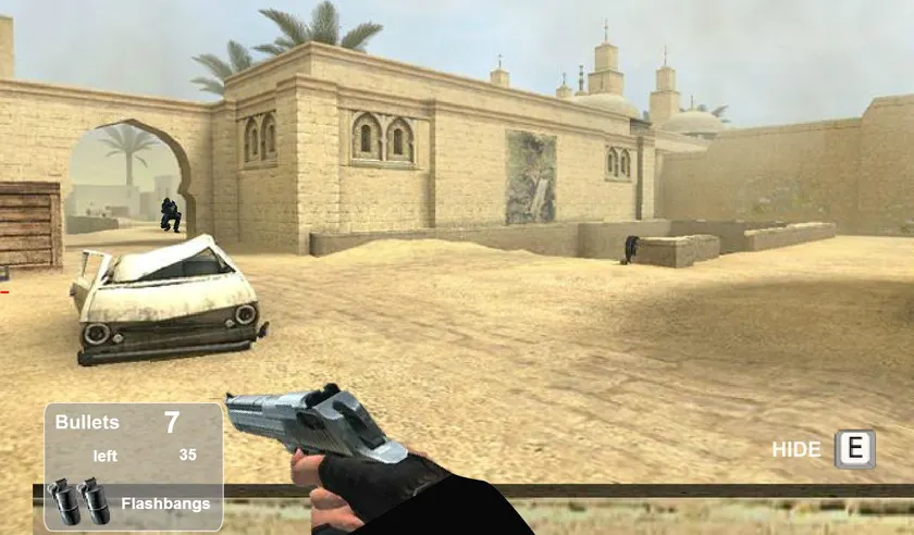| Controls: | 1=Dessert Eagle, 2=M4 Rifle 3=Sniper Rifle E=Take Cover R=Reload F=Flashbang |