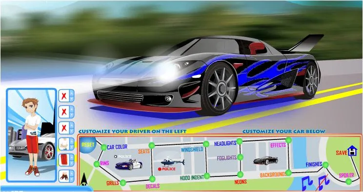 Pimp the car to your liking and make it look as cool as possible. Save picture from flash once done.
