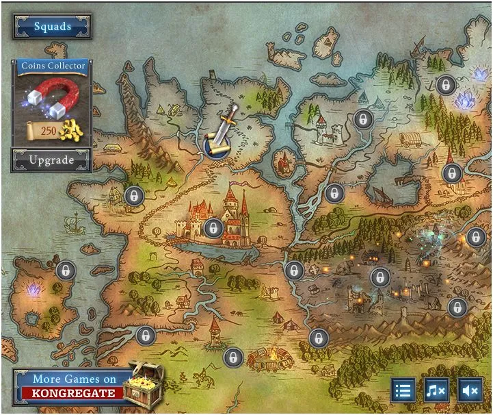 | Controls: | Reconnaissance: use your mouse to place units (click and drag to rotate). Fight: click on unit or flag to select, point and click where to move. Also you can use keyboard keys 1-8 to select squad. TIPS: - You squad will become bigger each level. - If you |