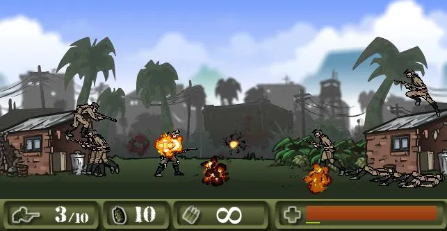 | Controls: | Basic Control: Arrow up/W- Aim up. Arrow down/S- Aim down. Arrow left/A- Walk left. Arrow right/D- Walk right. Z/L key- Jump. X/K key- Shoot. C/J key- Grenade. P- Pause menu/options. Advanced Control: WASD- For movement. Mouse- To aim, left clic |