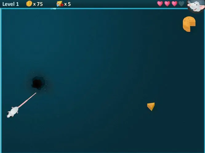| Controls: | Mouse - Move. Double-Click - Shoot. Space bar - Jump. X - Activate Special Power. Collect as much food as you can. Cheese is worth 15 points. Everything else is worth 30 points. To complete a level, collect the big piece of cheese. Purchase upgrades |
