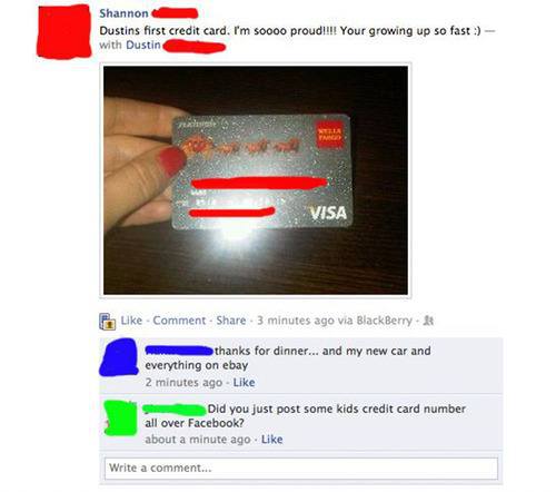 What kind of genius would post a picture of their credit card on the internet? That's just not very bright.