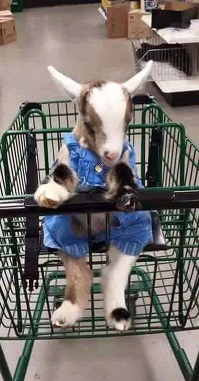 This baby goat has got to be the cutest thing ever to grace the walmart store. If they were selling them I'd buy three! What a cutie pie!