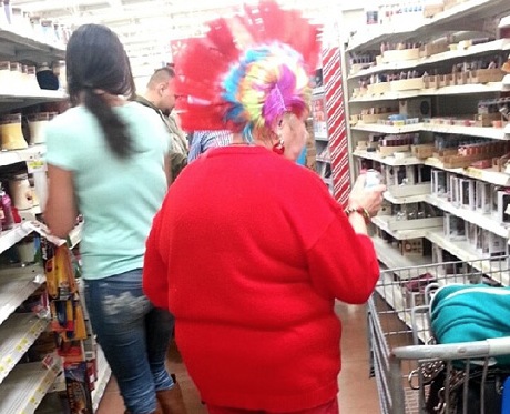 Get Your Haircut at Walmart - Red Granny with Rainbow Mohawk Hair