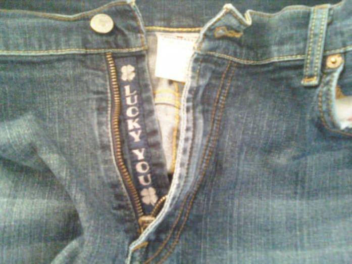When you open the zipper to the pants it says "Lucky you" from the perspective of your sex partner! If you are having sex these jeans are hot!