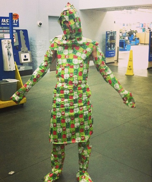 They have the best kind of gift wrapping paper you can buy or even wear at Walmart. Imagine your spouse opening this outfit up for Christmas?