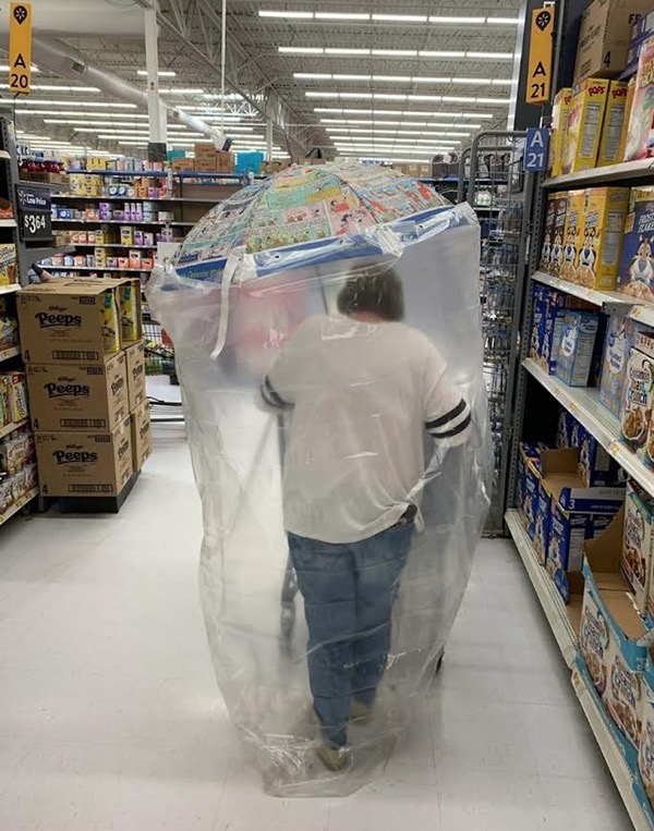 All you need is an umbrella and a shower liner and you have yourself a plastic bubble.