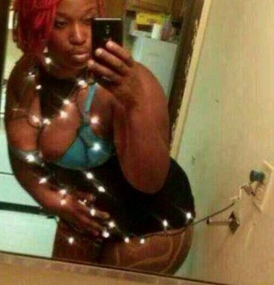 Girl Lit Up Like a Christmas Tree Selfie - Christmas Lights Fashion Fail