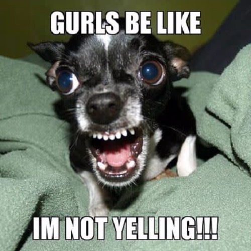 Girls be like...I'm not yelling! I couldn't tell by those bulging eyes and sharp teeth!