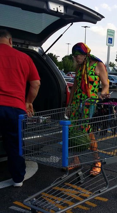 This woman really knows how to stand out in the parking lot. I need to put my sunglasses on just to look at her. Good god!