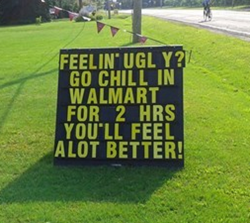 Felling ugly??? go chill in Walmart for two hours you'll feel a lot better!!! that's the sine I seen my neighbor put up in his yard