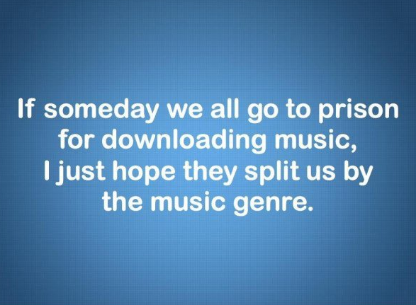 If someday we all go to prison for downloading music, I hope they split us my the music genre.