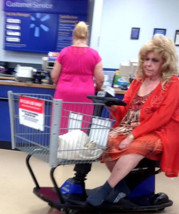 At Walmart you definitely don't have to dress up. Just head on over to the store in whatever you're wearing. No shoes no problem. It's like the Ellis Island of fashion fails.