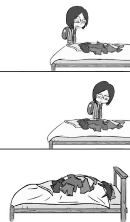 Sometimes you are just so tired when you get home you just want to collapse. Clothes on the bed? No problem! Just get in bed under them...