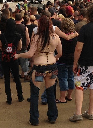 I went to the rock and roll concert and this is what I saw there. A woman dressed up like that, I know ripped jeans are in style but what is this did she spelled glue on a chair and she got glued.