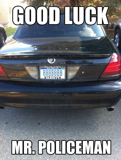 good luck reading my car license plates officer i came up with the perfect number for it its B88B8BB