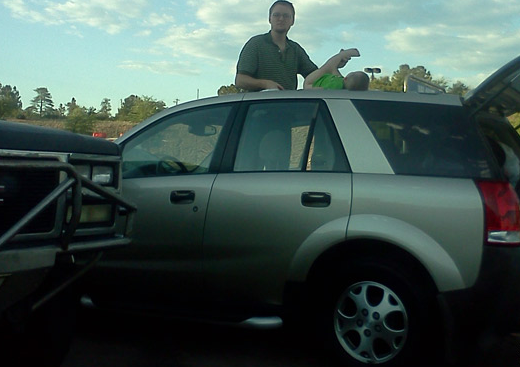 Sometimes spoiled babies like to get their diaper changed on the top floor balcony sun deck because they like how the sun warms up their tushy
