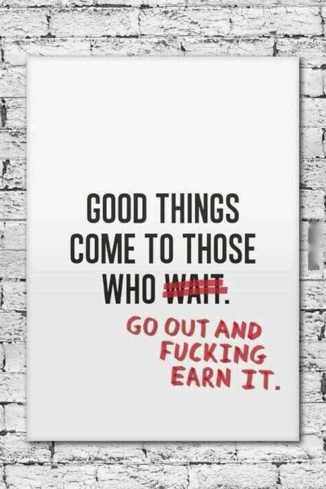 Good Things Come To Those Who Don't Wait. Scratch that. Good things come to those who go out and fucking earn it! fify