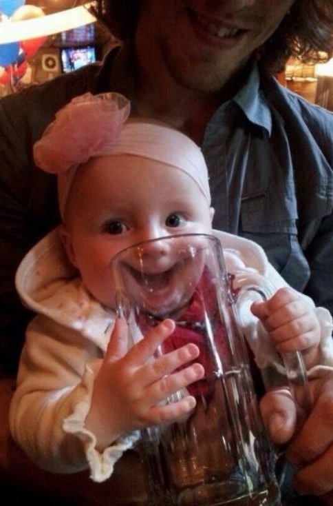 Goofy Smile - Funniest Baby Face Ever - Baby Drinks from a Beer Mug - WTF