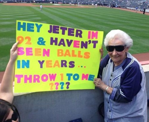 Grandma Loves Derek Jeter - Please Throw Me Some Balls - Funny Baseball Signs