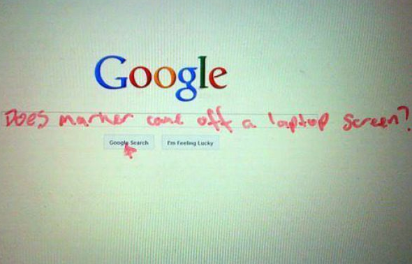 Yep grandma was at our house again, I can tell because she used permanent marker to write in a computer screen, she went onto google and instead of piping she used a permanent marker