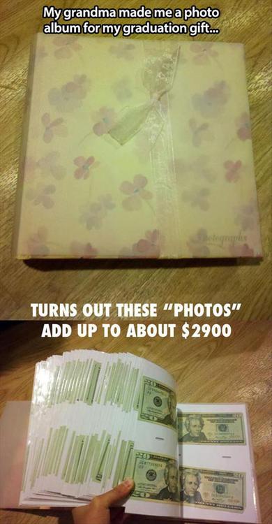 I thought grandma gave me a regular old photo album as a graduation gift. I opened it up to find an even better surprise. Thanks Gram gram!