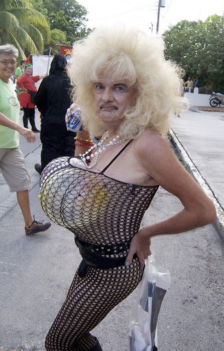 Good old grandpa. You can't take him anywhere. He's always trying to be the life of the party even if he's flat chested. He tries hard.