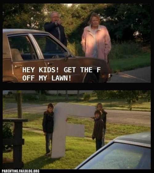 So what is the right way to talk to a kid when you are shouting on them angrily. Well rule number one no matter what happens never swear in front of a kid. So this is exactly what this old man is doing here. You know how old people love their lawns but these kids never get it. So he is shouting on the children to get the F off his lawn but the letter F here literally means the letter itself. HAhahhahahahahahhha