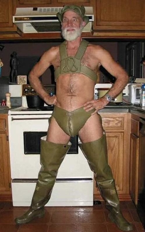 Wow grandpa wearing green leather really frightens me. Someone needs to put this poor guy into a home stat. Getting old is scary.