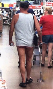 It's not easy getting old. You forget everything including to put on pants. Oh well, he blends in just fine at Walmart.