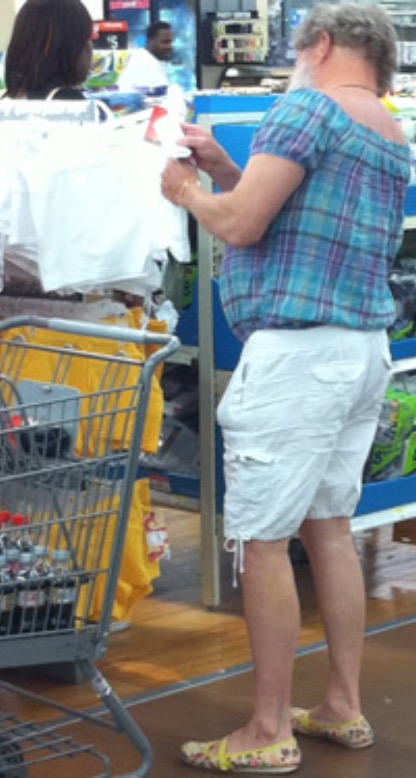 I really think grandpa looks great in this blouse. The good news is he and grandma share the same wardrobe so they save lots of money