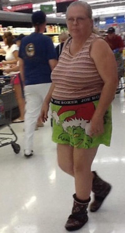 Looks like it's going to be a very light christmas for her. Maybe she can ask Santa for a new pair of pants and maybe a whole new wardrobe.