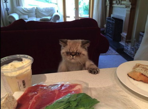 The grumpy cat is growing impatient and he wants his dinner right now!!!!