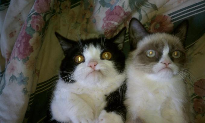 Here is Tard Grumpy Cat next to his girl friend. The look like the purr-fect couple both angry and not amused!